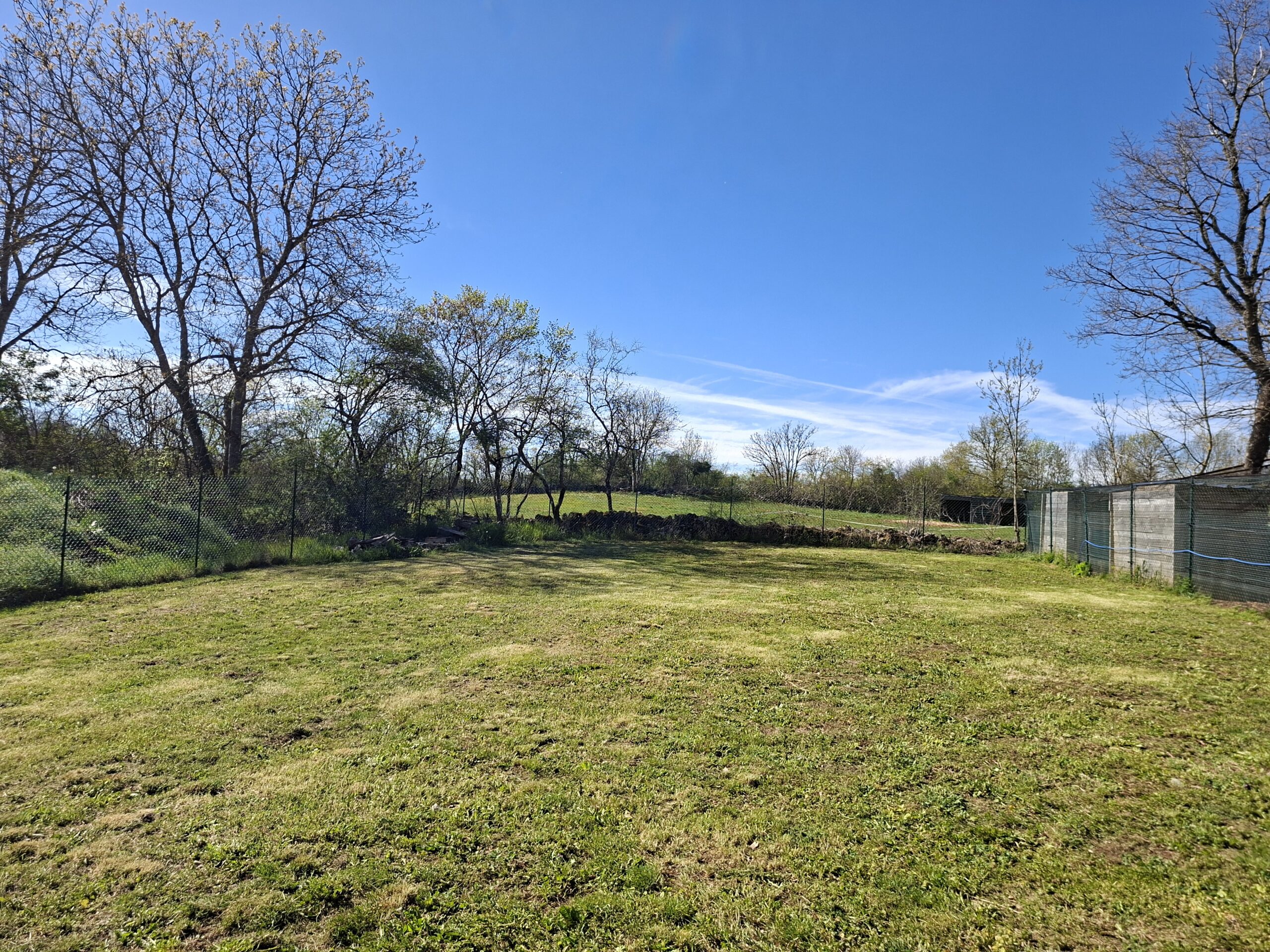 Nous avons un jardin entièrement clôturé avec un portail motorisé, des allées goudronnées, des arbres fruitiers et 2 grandes terrasses bétonnées.